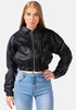 Stylish winter faux leather jacket. The cropped leather jacket has long sleeves and zipper closure. The elasticated hem cropped jacket gives no chills!